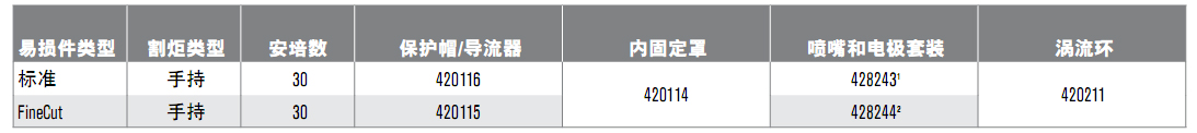 包含 2 个 FineCut 喷嘴 (420117) 和 2 个电极 (420120)。