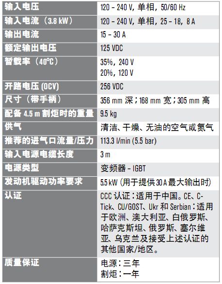 切割作业。当以最大建议输出 25 A 运行本系统时,