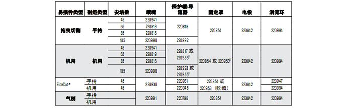 割炬易损件可提供各种数量的喷嘴和电极。有关更多信息,请联系您的经销商。